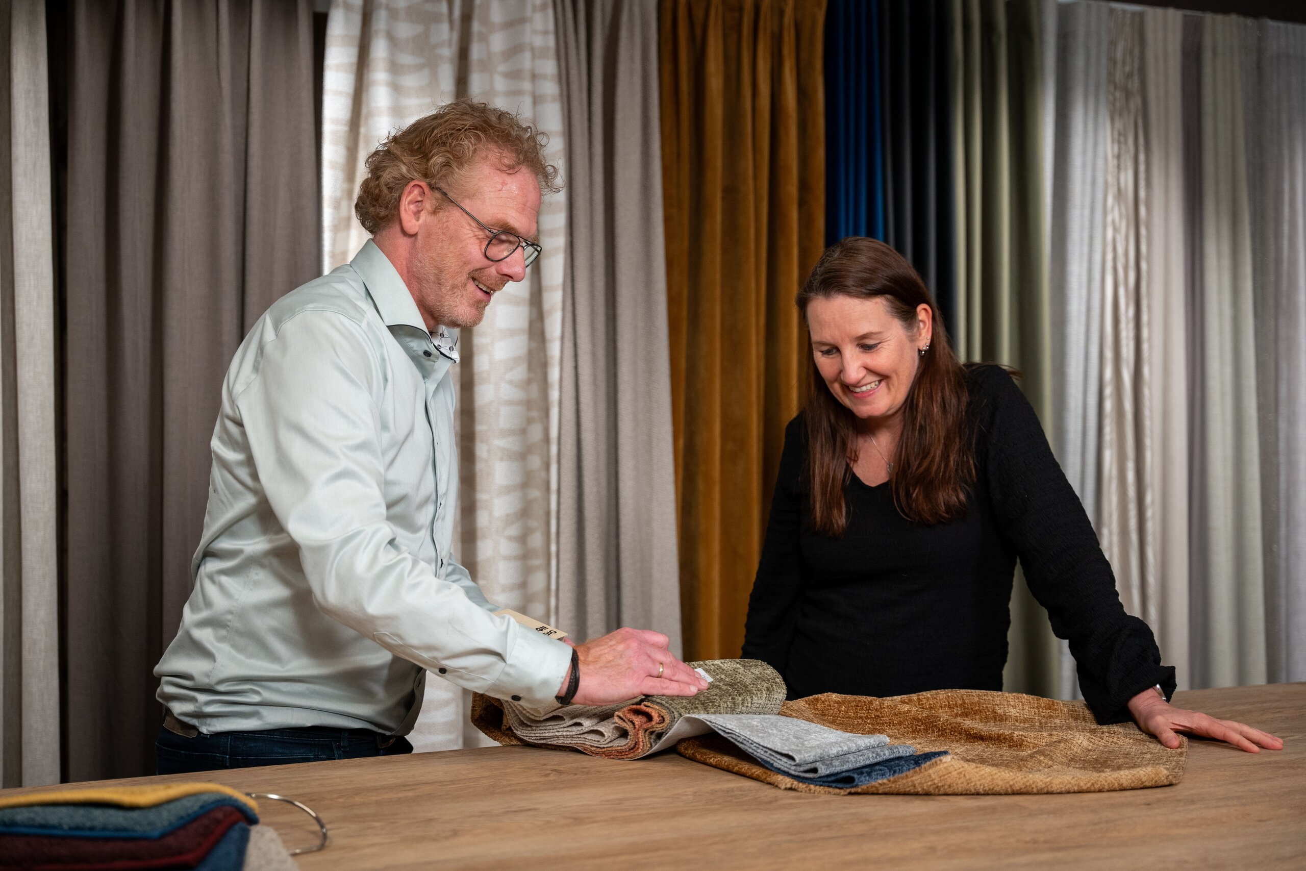 Erwin doet van alles: hij meet bij klanten thuis, stelt offertes op en verkoopt in de winkel. Stoffeerder Jarno zorgt voor het leggen van vloeren, het egaliseren van ondervloeren en het ophangen van raamdecoratie. Klanten noemen onze stoffeerders “fijne jongens” – en dat zijn ze ook. Alles wordt in eigen beheer gedaan, geen freelancers, maar vertrouwde gezichten die al jaren bij ons werken.